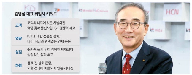 "KT가 발전하고 굳건해지기 위해서는 고객이 우리 서비스를 인정해야 한다. 이를 지향하면 1등 위상은 빠른 시간 내 찾을 수 있을 것이다."